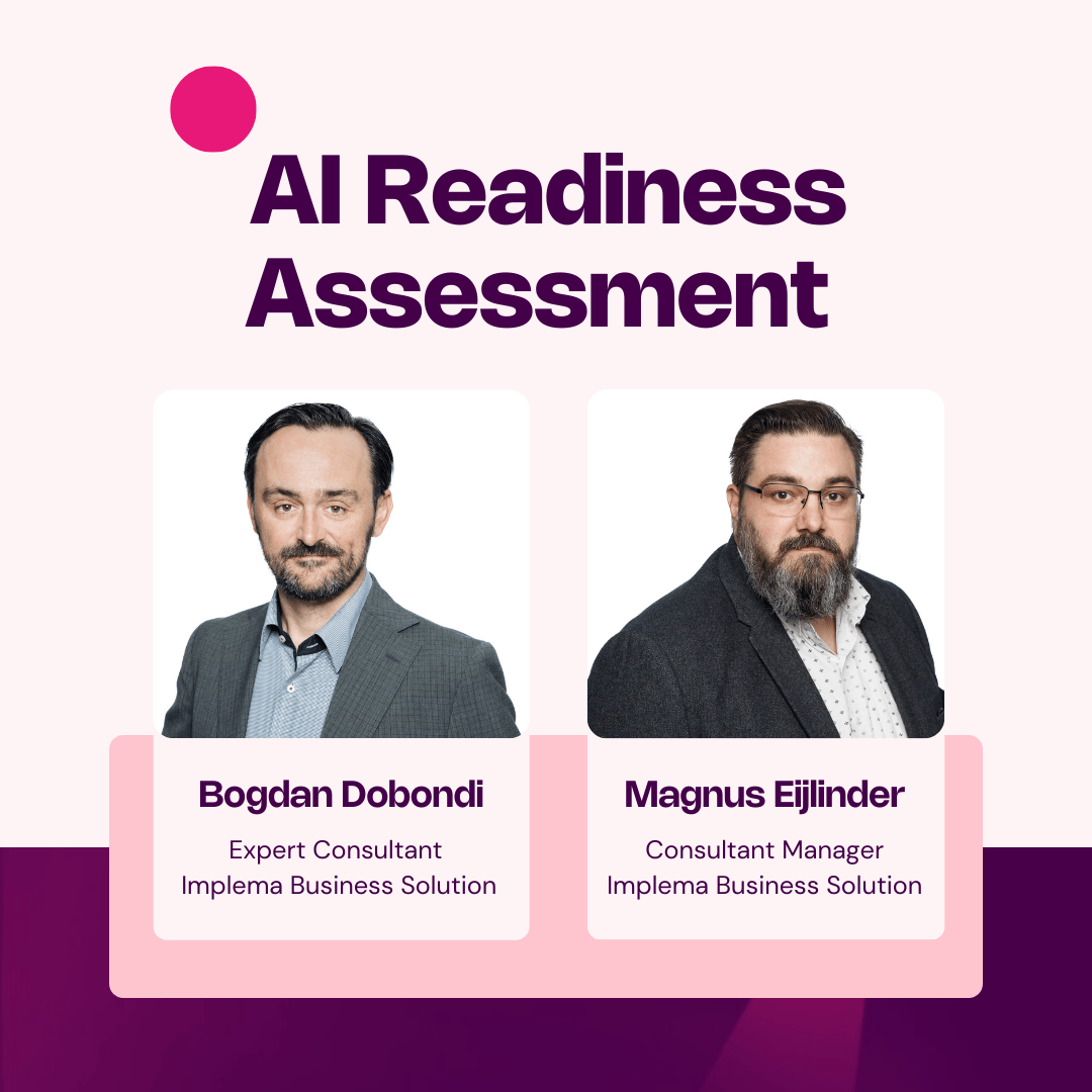 AI-ambitionen är stark i svenska företag, men verklig AI-beredskap är fortfarande ovanlig. Att ha ambitionen att använda AI är inte samma sak som att vara redo. Många organisationer har kraftfulla datamiljöer – men vet inte om de är rustade för att låta AI göra verklig nytta. Implemas AI Readiness Assessment ger dig en tydlig, strukturerad bild av hur väl din verksamhet är förberedd – och vad som behöver göras.