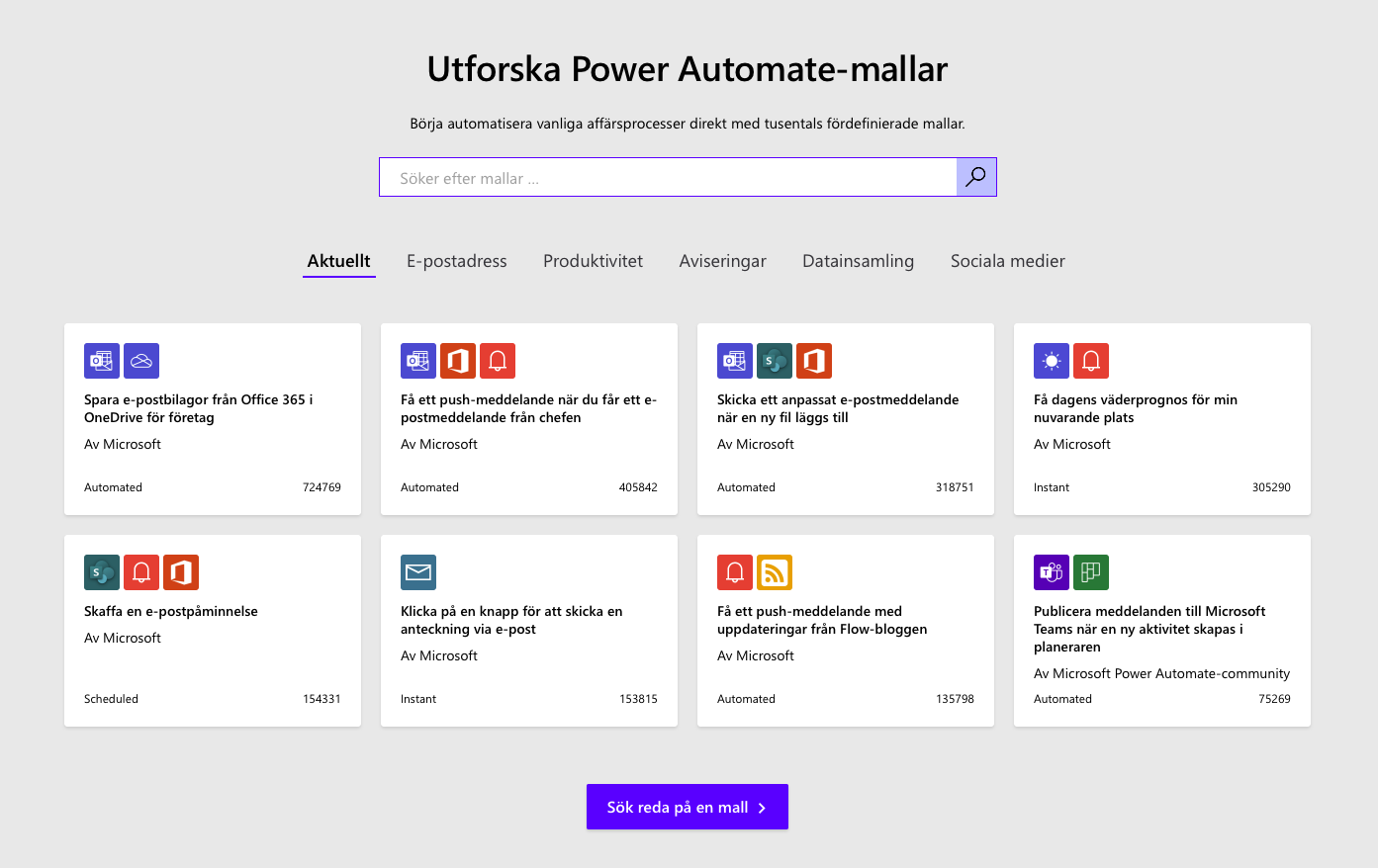 Bild: Power Automate har tusentals färdiga mallar att välja mellan. Källa.
