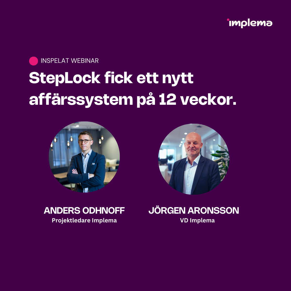Lyssna på Jörgen Aronsson, VD Implema och Anders Odhnoff, projektledare och konsultchef Implema, när de berättar om StepLock och Implemas resa tillsammans. Bakgrund, förberedelse, utmaningar och verksamhetsnyttan.